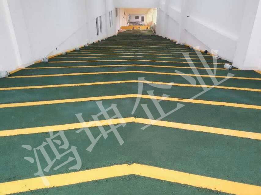 鴻坤無震動止滑車道材料適用于車庫坡道、道路、公交車道、自行車道、人行道等有特殊防滑要求的部位、區域。