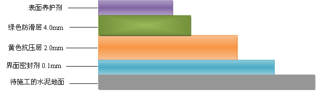 4 、施工方法:將鴻坤材封閉底漆按配比充分?jǐn)嚢瑁?-3次均勻涂在車道基礎(chǔ)表面