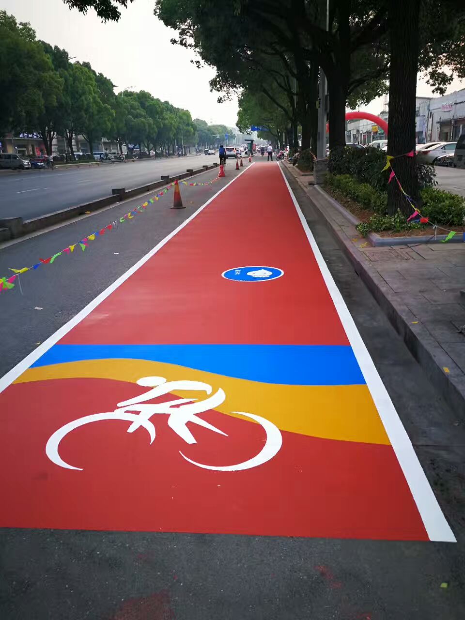 彩色防滑路面材料適用于多種場所,包括自行車道、人行步道、健身步道等局部要求防滑處理的場所。彩色路面表面步行舒適,下雨天有一定的散水功能。