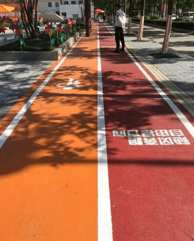 室外經(jīng)常會(huì)看到彩色的路面,例如紅色的自行車道,藍(lán)色的景區(qū)步道等局部防滑的路面。那為什么會(huì)有這種路面呢,彩色的路面又有什么作用呢?